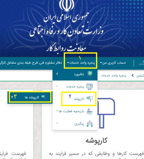 💻 سایر قسمت های سامانه روابط کار